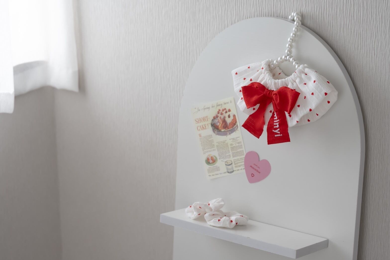 真っ赤なネームリボンを合わせたケープです♡