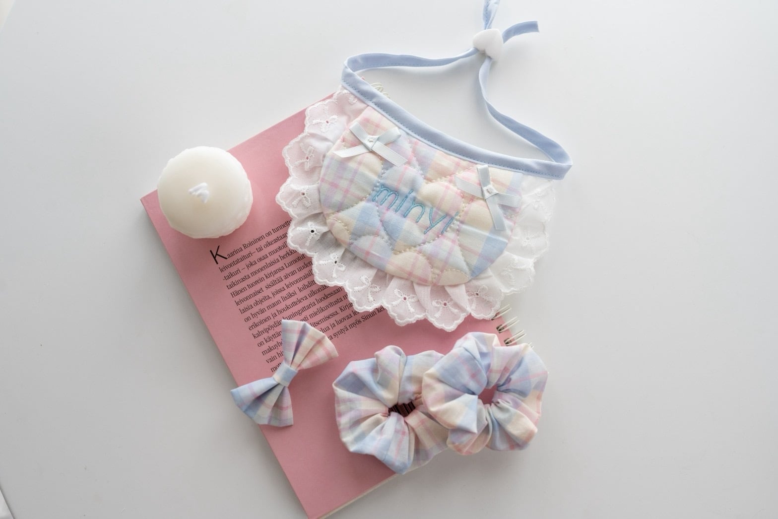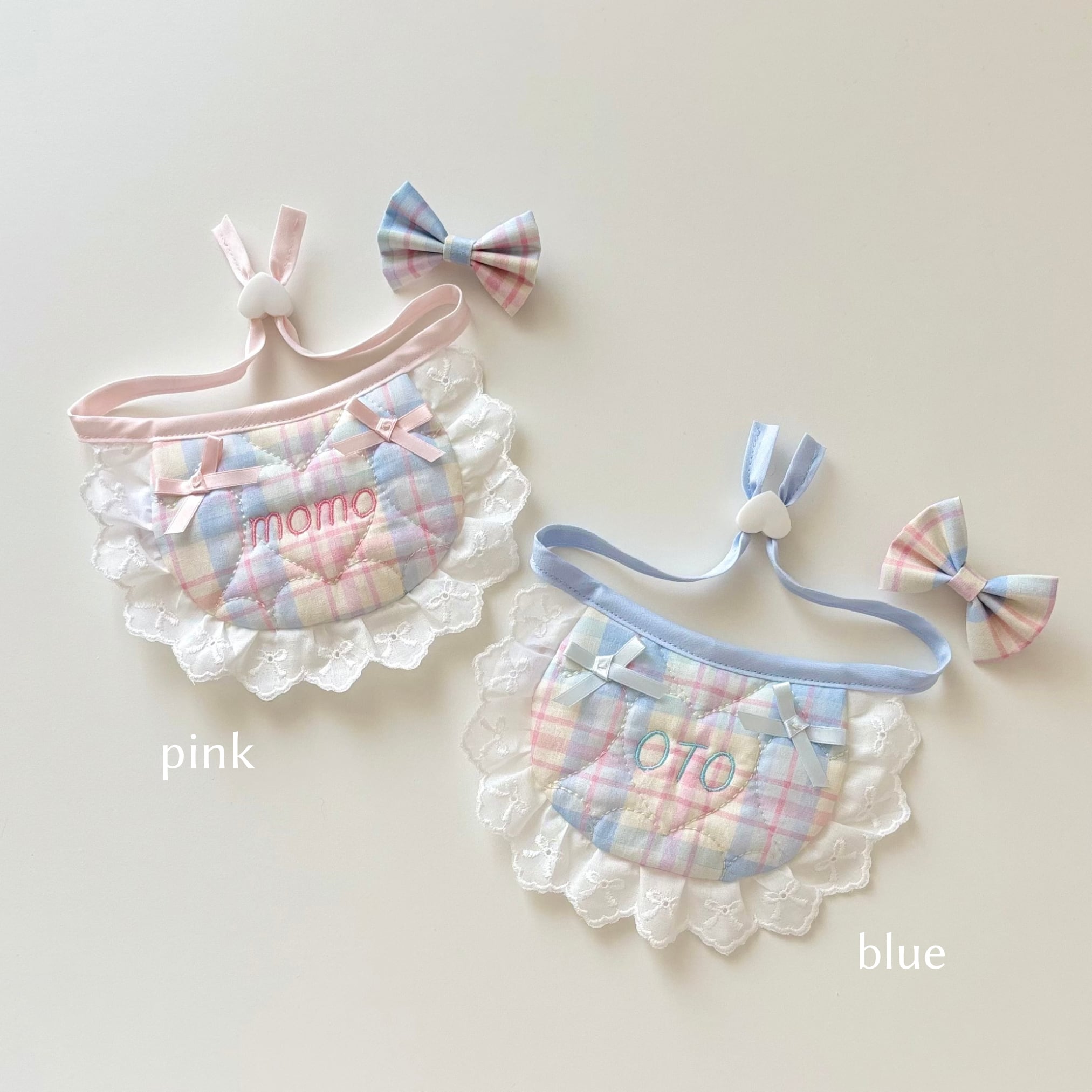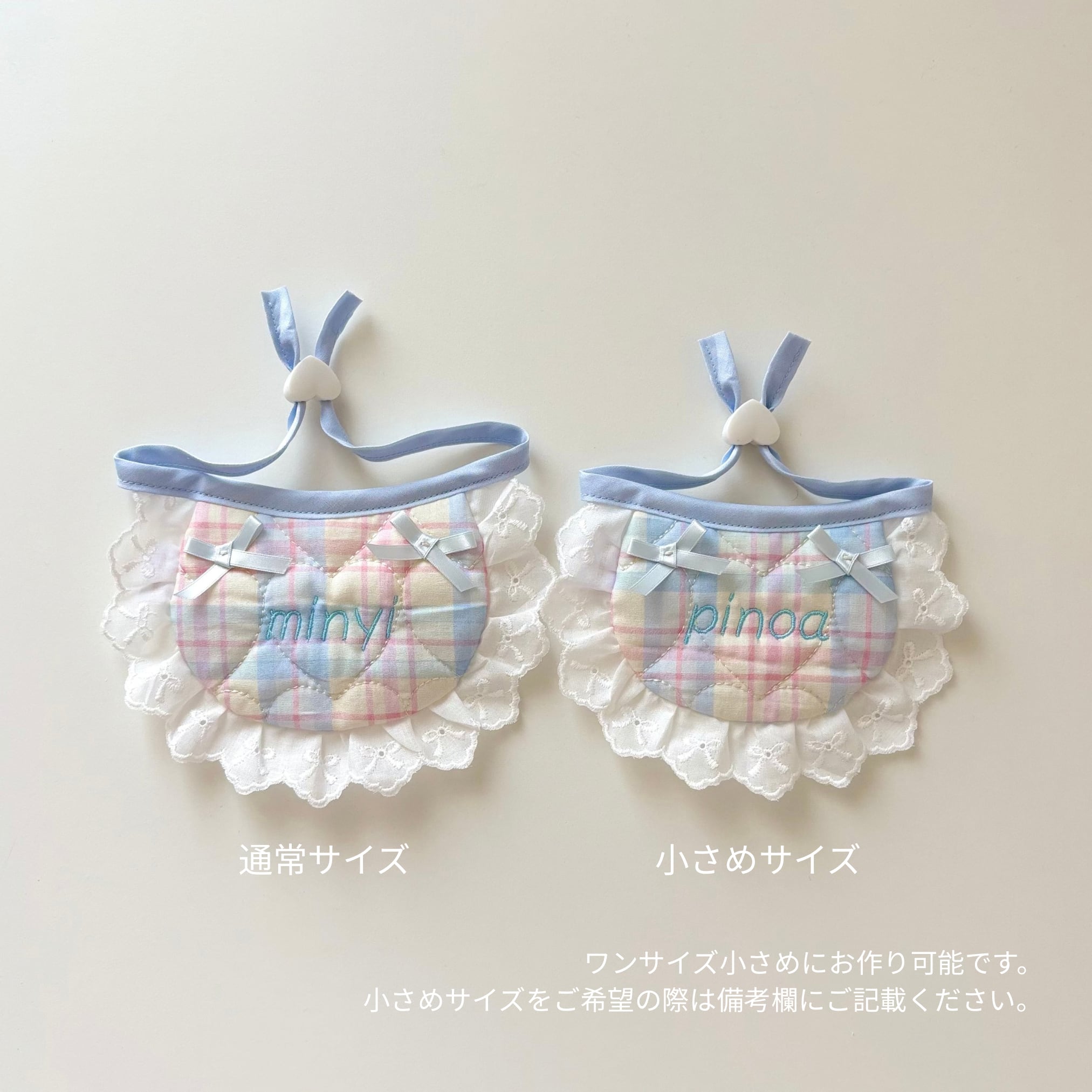 【営業日14日以内配送】macaron check bib / 犬スタイ/ ネーム刺繍 /韓国生地