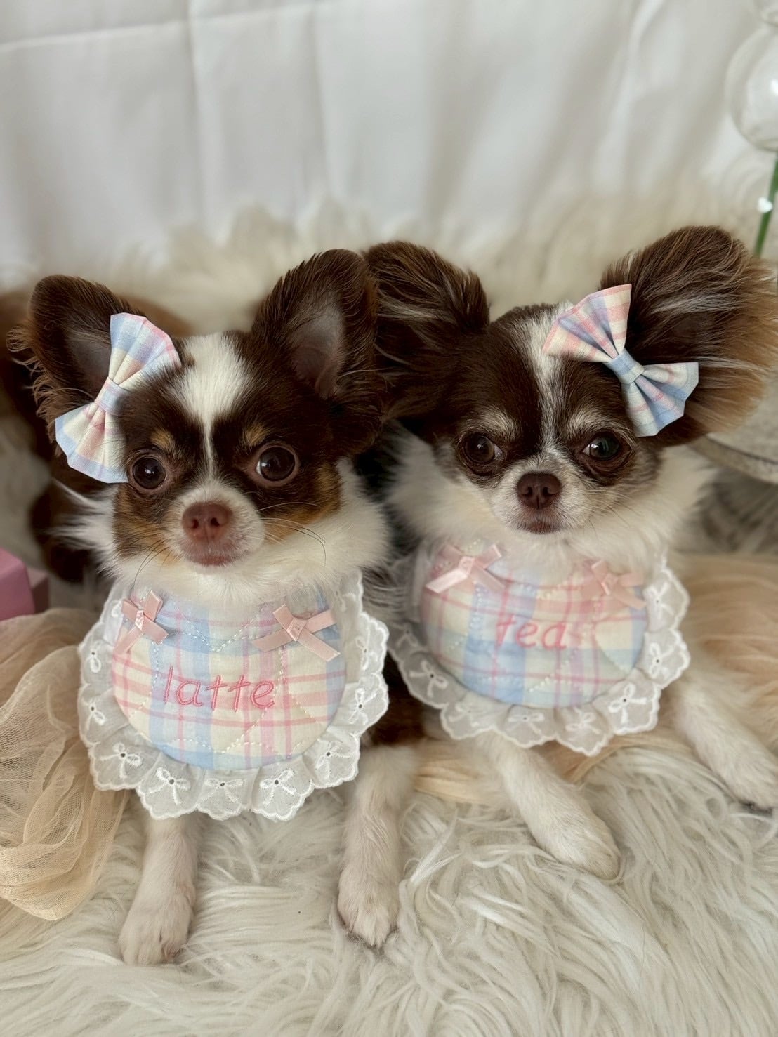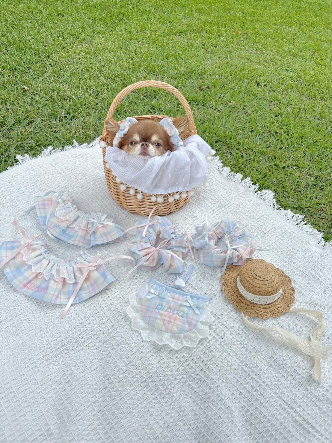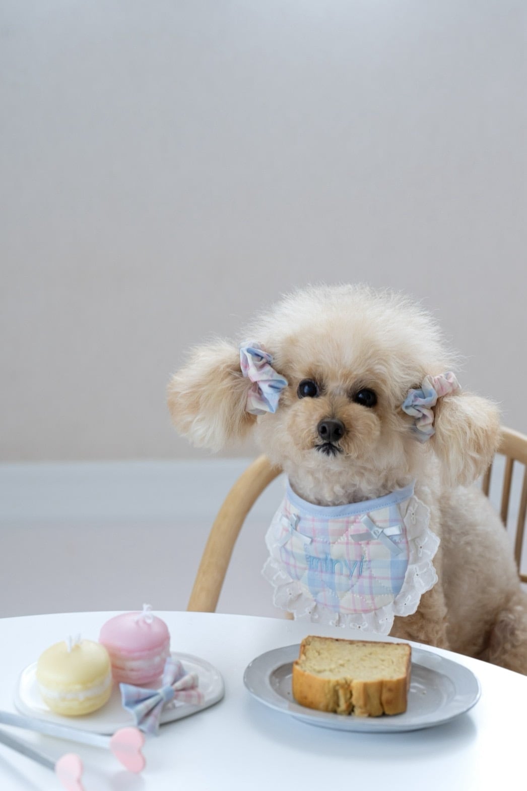 【営業日14日以内配送】macaron check bib / 犬スタイ/ ネーム刺繍 /韓国生地
