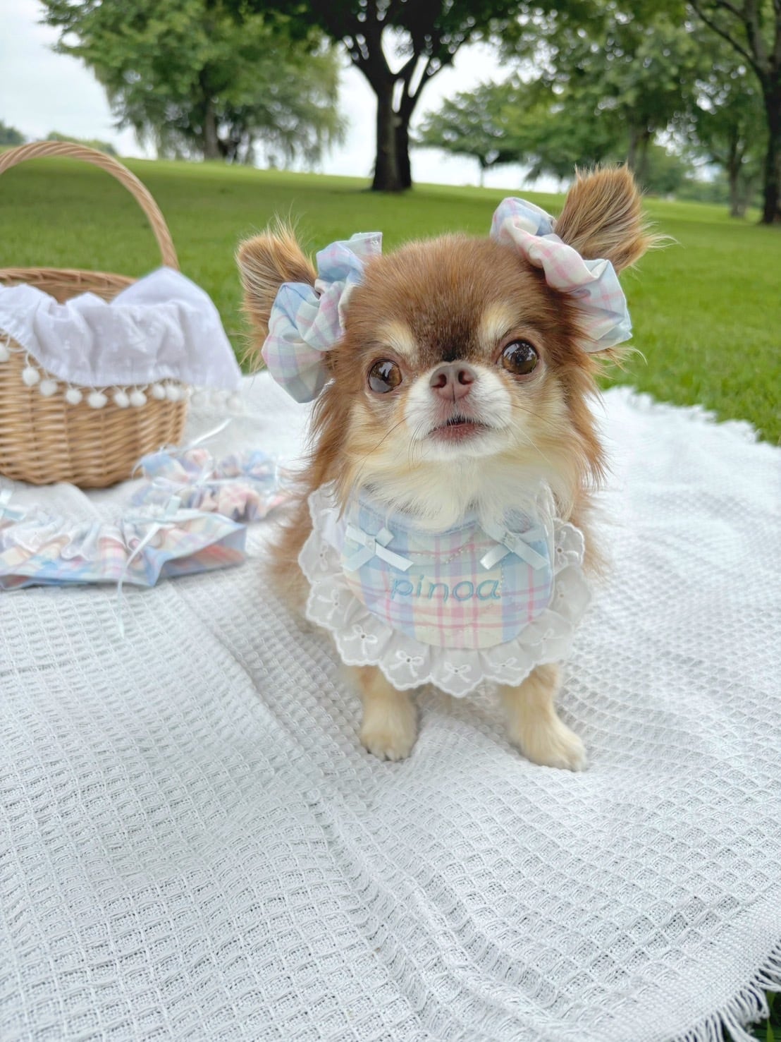 macaron check cape&bibとおそろいのシュシュアクセサリー♡