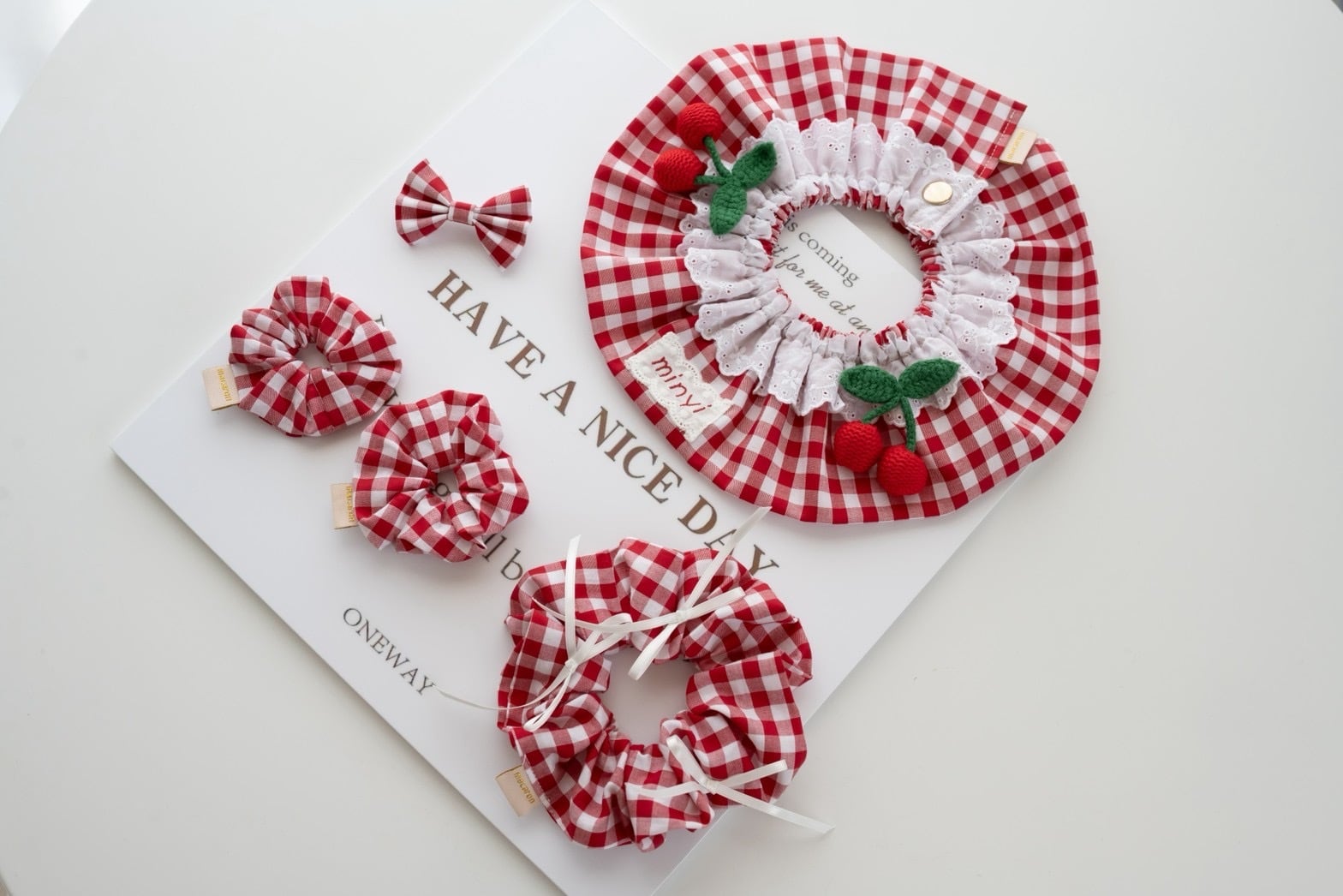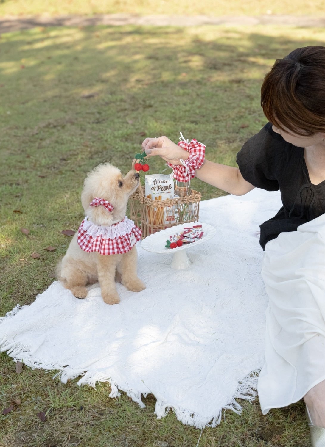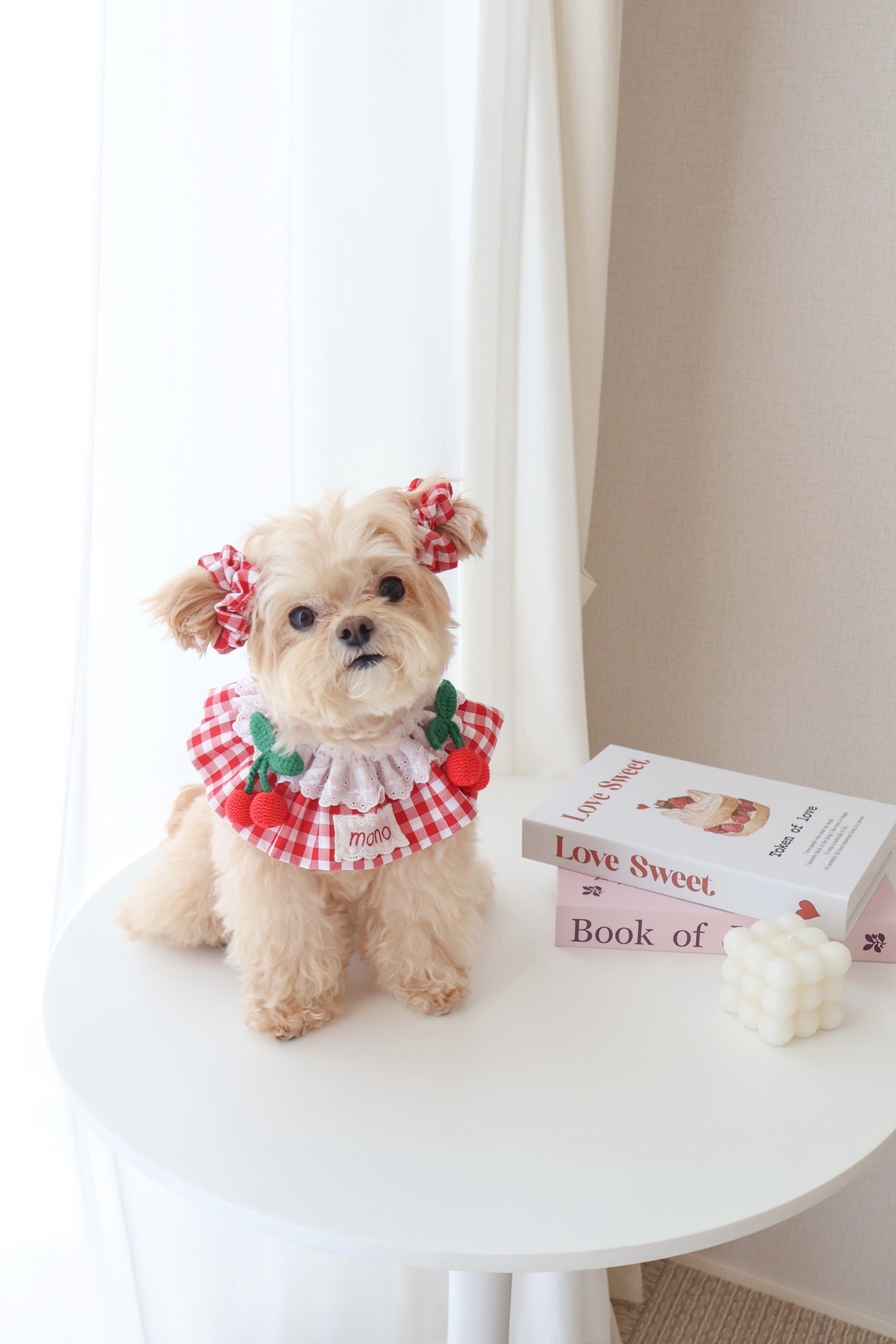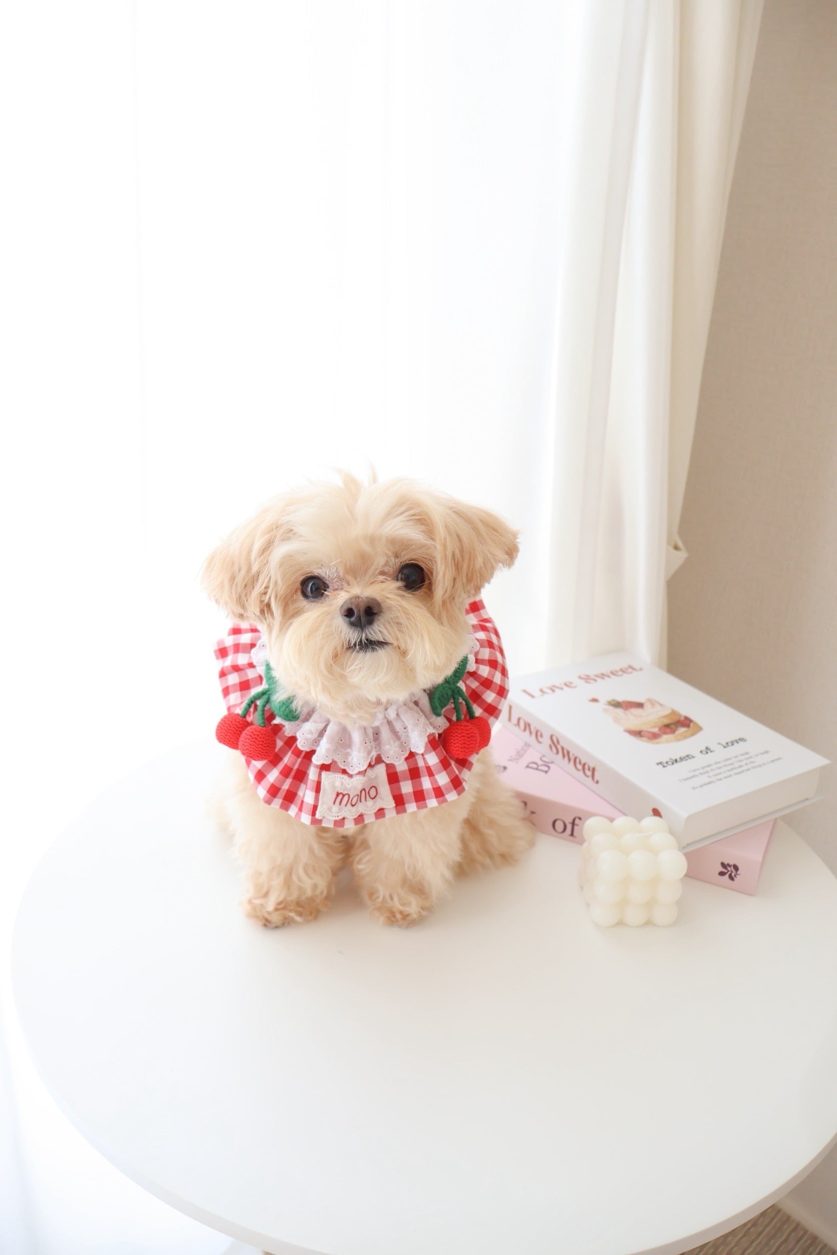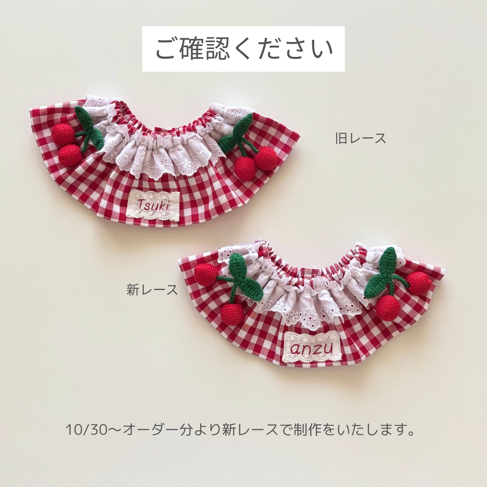 【営業日14日以内配送】cherry gingham cape/犬ケープ/ 犬スタイ/ ネーム刺繍