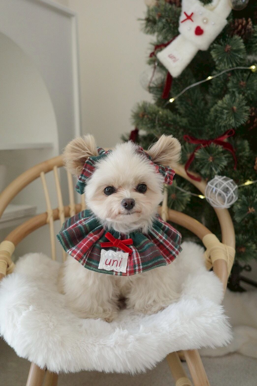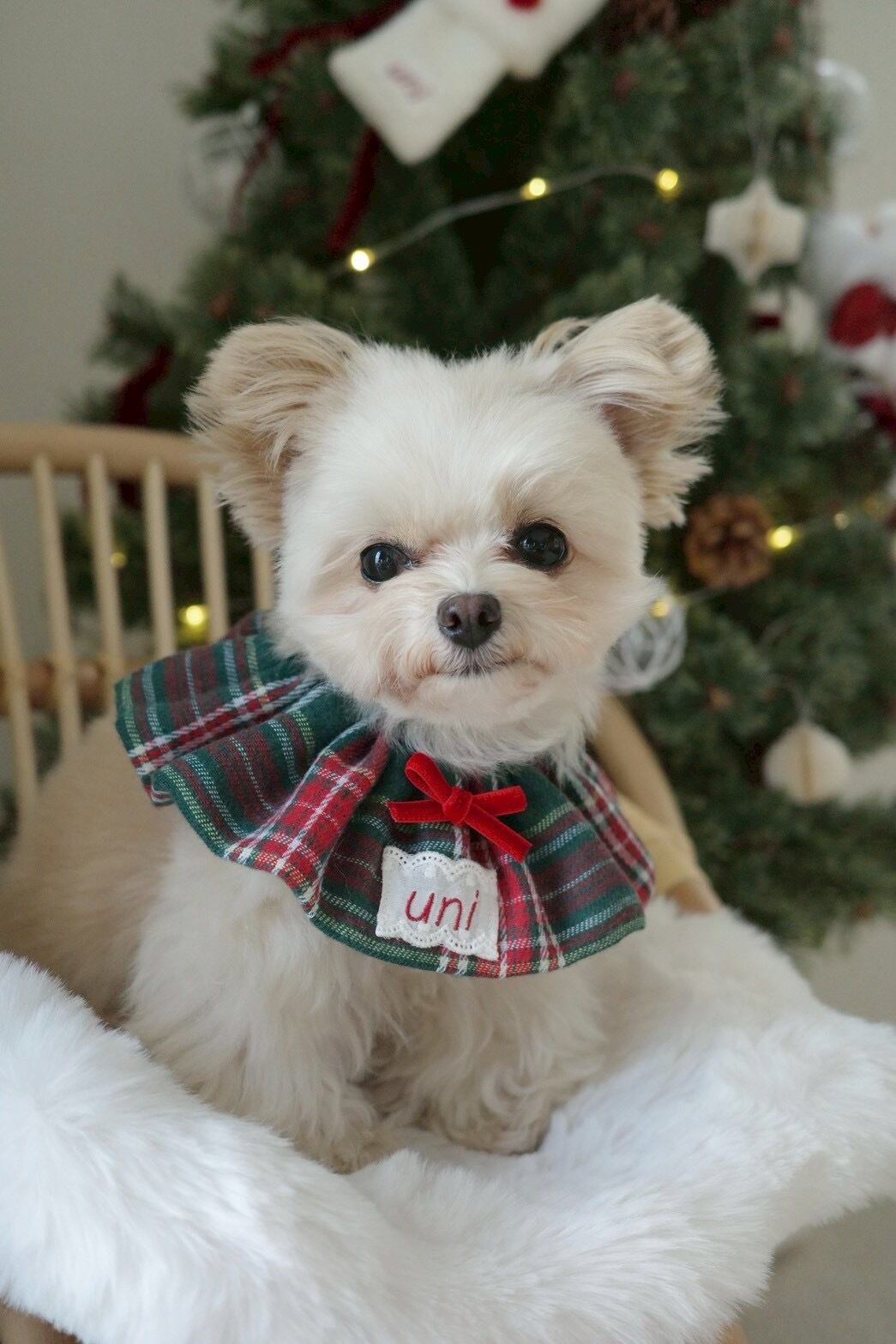 【12/19〜20配送予定】christmas check cape / 犬ケープ/犬スタイ