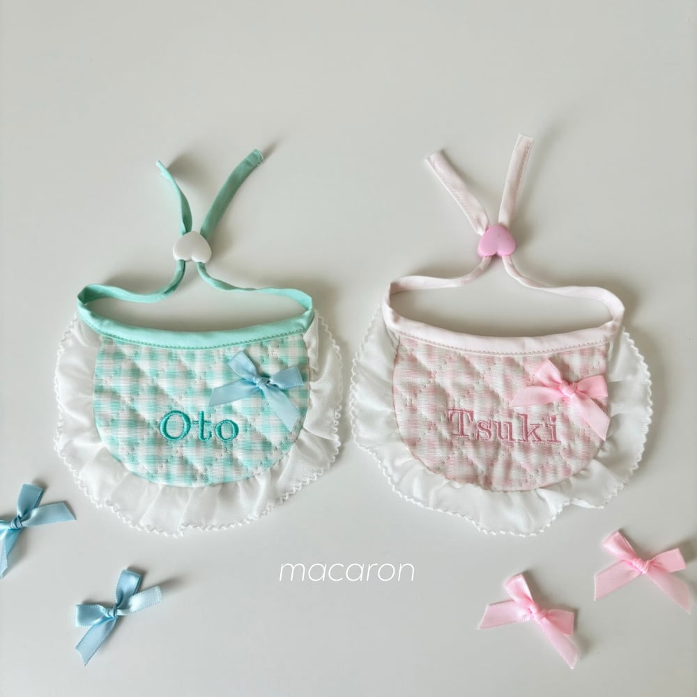 【営業日14日以内配送】gingham check frill bib / 犬スタイ/ ネーム刺繍