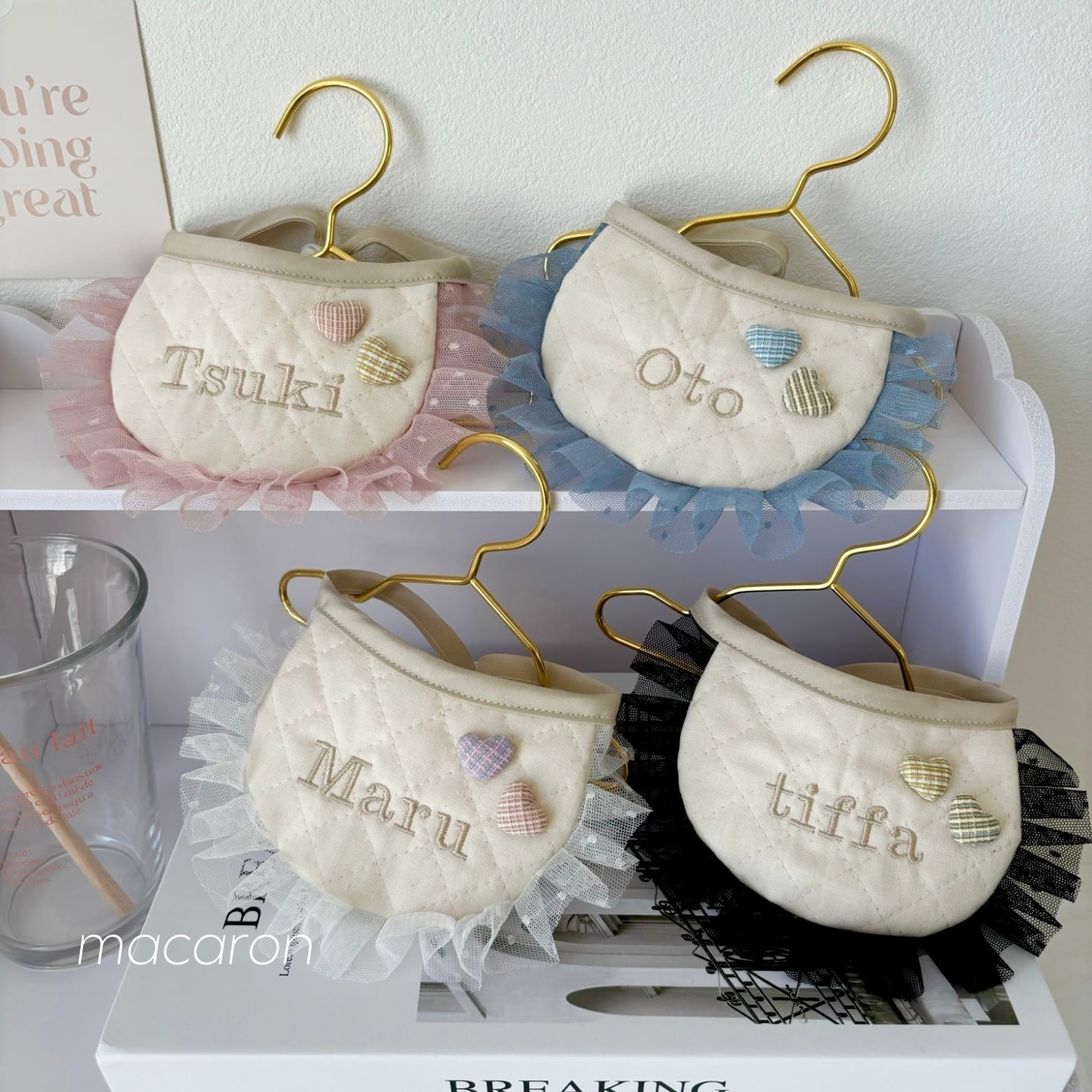 【営業日14日以内配送】tweed heart bib / 犬スタイ/ ネーム刺繍 /韓国生地