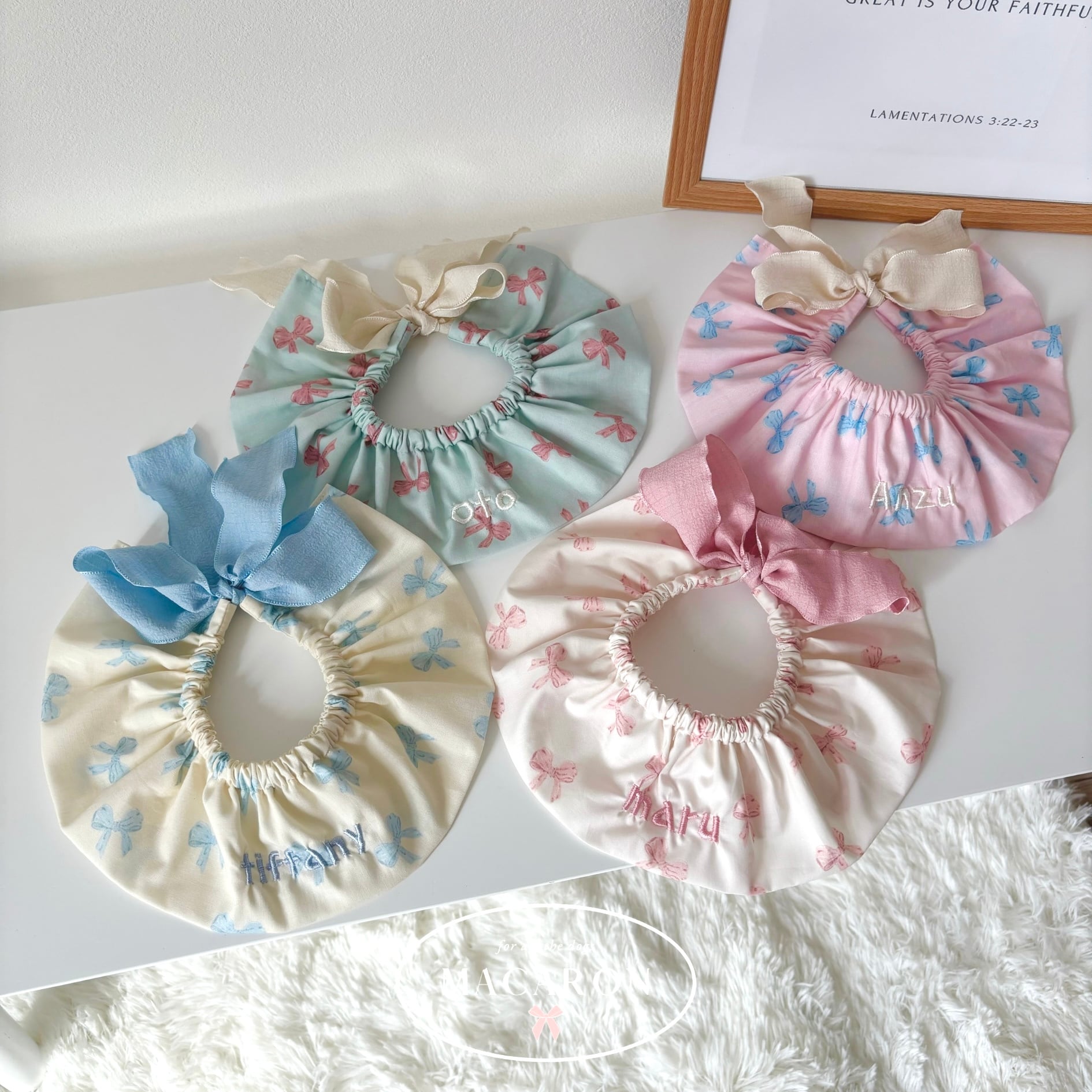 【営業日14日以内配送】pastel ribbon cape / 犬スタイ/ ネーム刺繍 /韓国生地