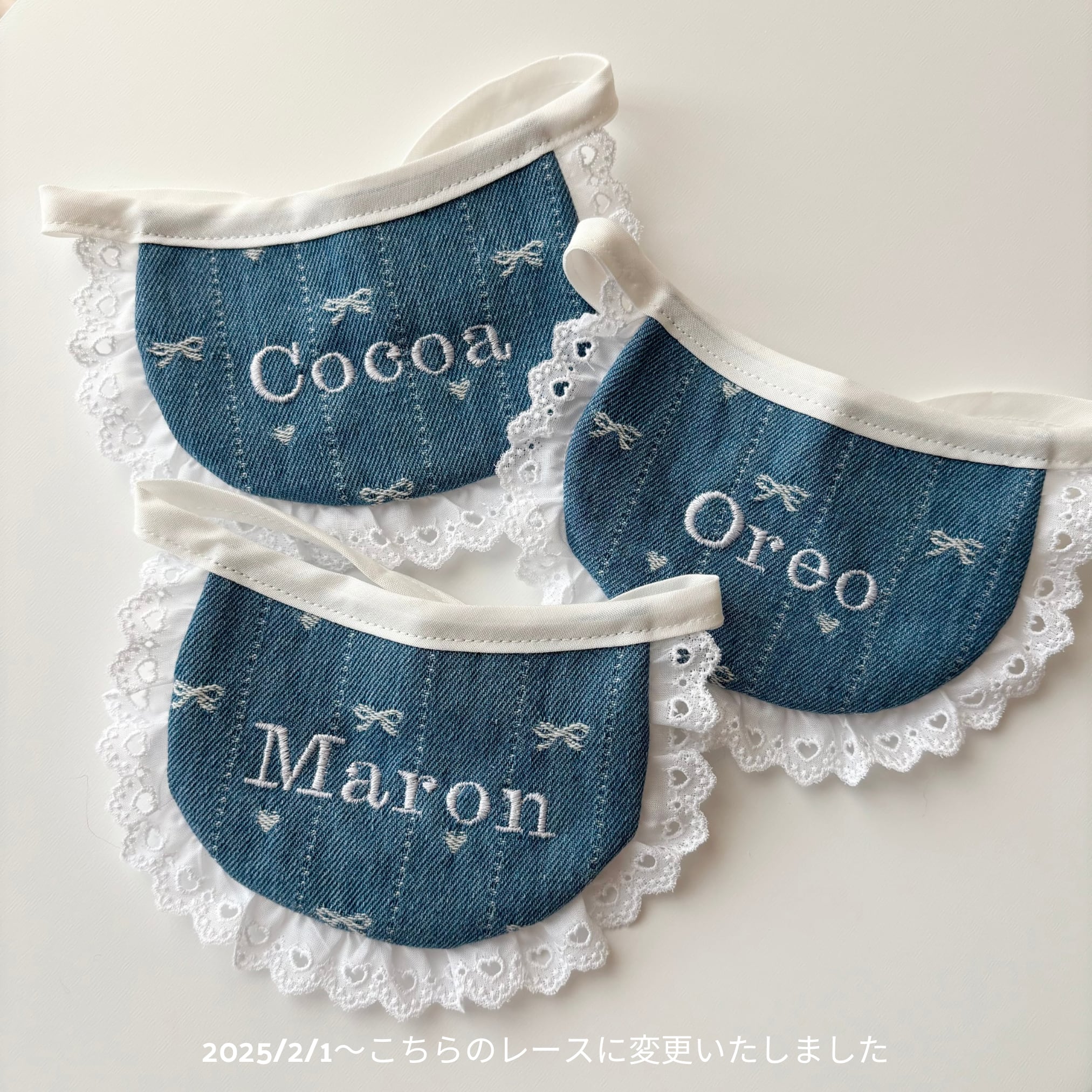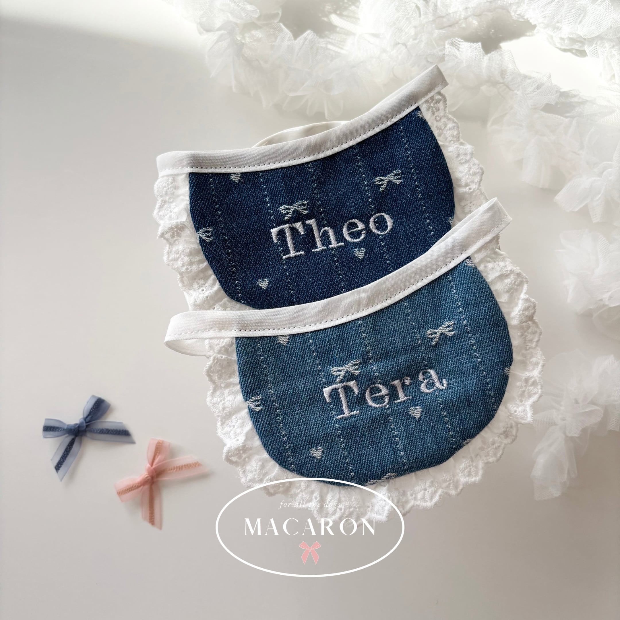 【営業日14日以内配送】cotton lace denim bib / 犬スタイ/ ネーム刺繍 /韓国生地