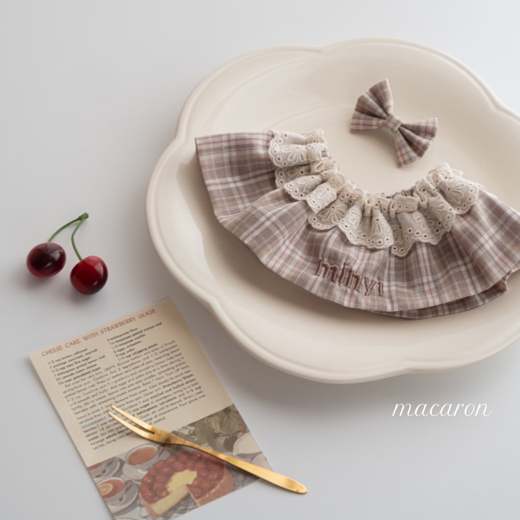 【営業日14日以内配送】girly check cape / 犬スタイ/ 犬ケープ/ネーム刺繍 /韓国生地